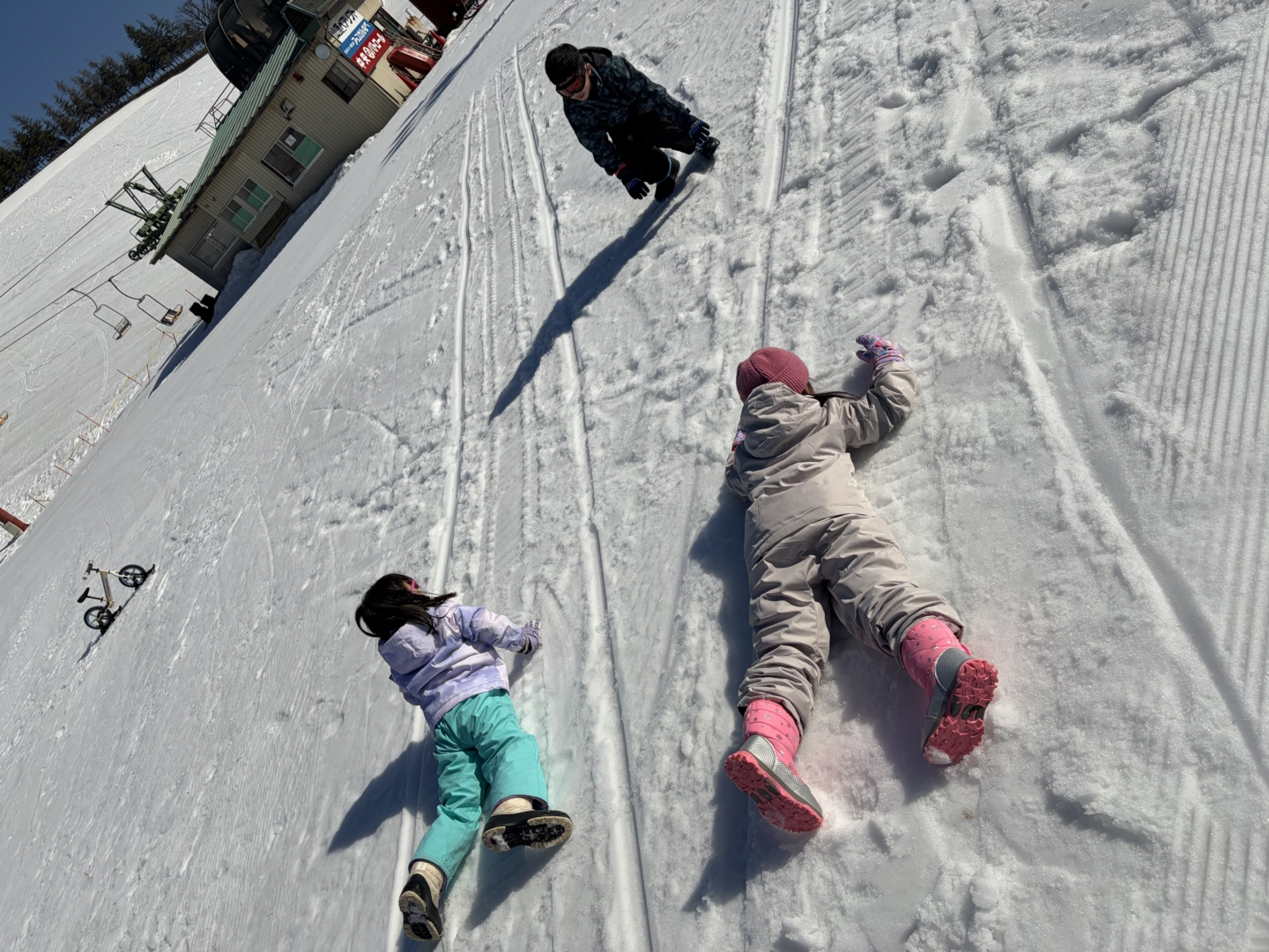 先日、友だち家族と神鍋スキー場に行ってきました。天気も良く、オリンピック効果なのかたくさんの人で賑わってました。子どもたちとソリ滑りを楽しもうと思ってたのですが、下の子が怖がってから私はずっと雪玉作りとなってしまいました(笑)ソリ滑りを楽しんでるみんなを横目に、せっせと雪玉と雪のお城作りをがんばりました。いつか子どもたちと一緒にレッスンを受けてスキー滑れるようになりたいです。